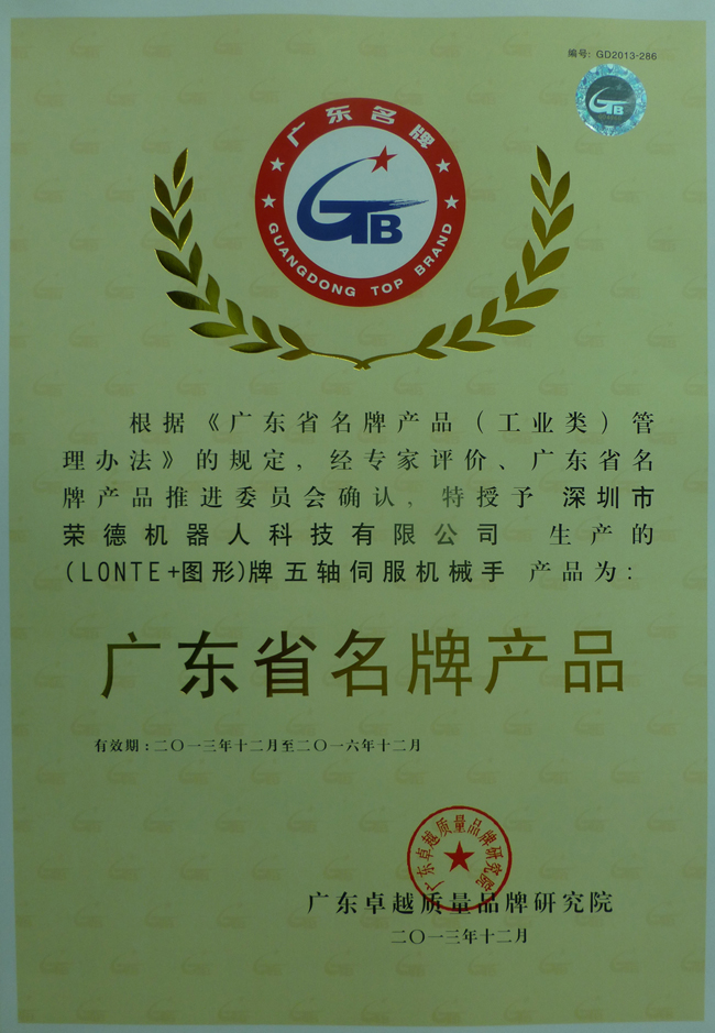 廣東省名牌產(chǎn)品申報可以說是相當(dāng)嚴(yán)格,體現(xiàn)了該榮譽(yù)的嚴(yán)肅性、公正性。這也充分證明了深圳市榮德機(jī)器人科技有限公司的綜合實(shí)力以及客戶對榮德公司的滿意程度。