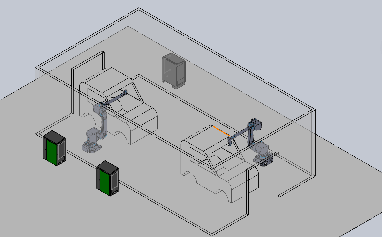 對機器人噴漆設備系統(tǒng)配備主電源控制,有效地對過電流、短路、過載、缺相等故障進行保護。對烘爐的控制加熱和自動恒溫控制,超溫、熱風循環(huán)風機故障時,自動關閉加熱裝置。發(fā)出聲光報警。對輸送的控制,采用變頻無級變速,具有運行平穩(wěn)、安全可靠、無抖動爬行現(xiàn)象。在噴漆室內(nèi)、外設有急停開關,并設有開線、停線報警裝置。整套系統(tǒng)配有安全保護裝置,并發(fā)出聲光報警。對噴涂機器人的控制,人工選定產(chǎn)品型號后發(fā)送信號到機器人控制柜,期間與噴房、輸送等各個信號間進行互鎖;PLC調(diào)用相關的噴涂軌跡完成噴涂作業(yè)。