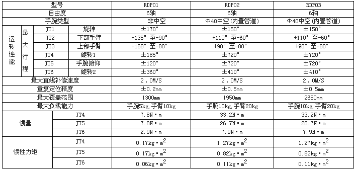 三、榮德噴涂機器人的技術(shù)參數(shù)