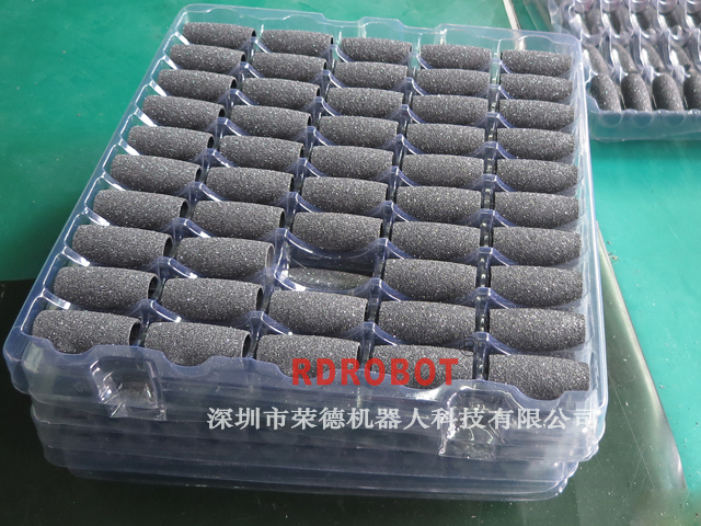 產(chǎn)品總述:將Roller head 磨頭素材表面自動(dòng)打毛后,自動(dòng)噴AB膠自動(dòng)噴砂子粘在上面,使素材表面形成規(guī)定范圍內(nèi)的粗糙度,通過機(jī)械手自動(dòng)抓取到烘干線上,自動(dòng)烘干永久將砂子牢牢粘在上面,砂子在受到作用力下不會(huì)掉落。一個(gè)去角質(zhì)的Roller head磨頭初步成型。
